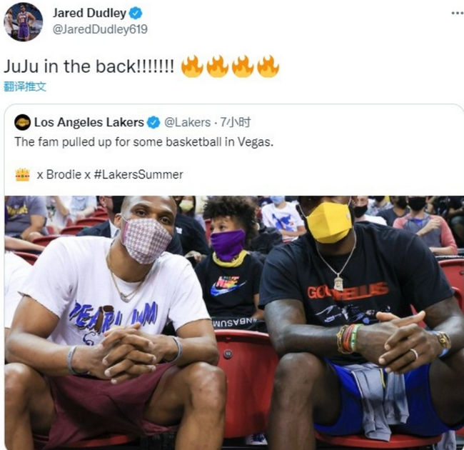 当时,杜德利转发了湖人的官方推特。不得不说,杜德利的儿子实在是太有排面了啊!